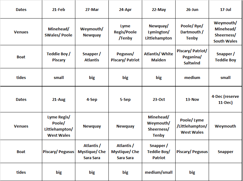 We have 12 dates set and many of the boats and venues already booked for 2020 see table . We are looking for boat anglers in all regions, there are no joining fees just a one off £60 deposit for new members that books your first trip. All regions can be fished and you can choose which ever ports and dates you want to fish from. To get the most species – one of two top Species League UK Champions, you need to travel to different ports and various times of the year and this is a challenge in its own right to pick the best venue and date to target difficult to catch species. So, book your spaces early to avoid disappointment