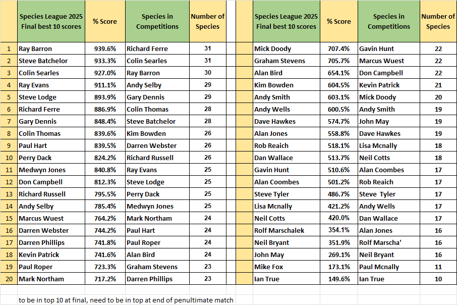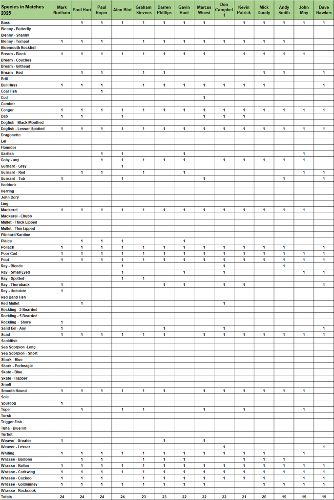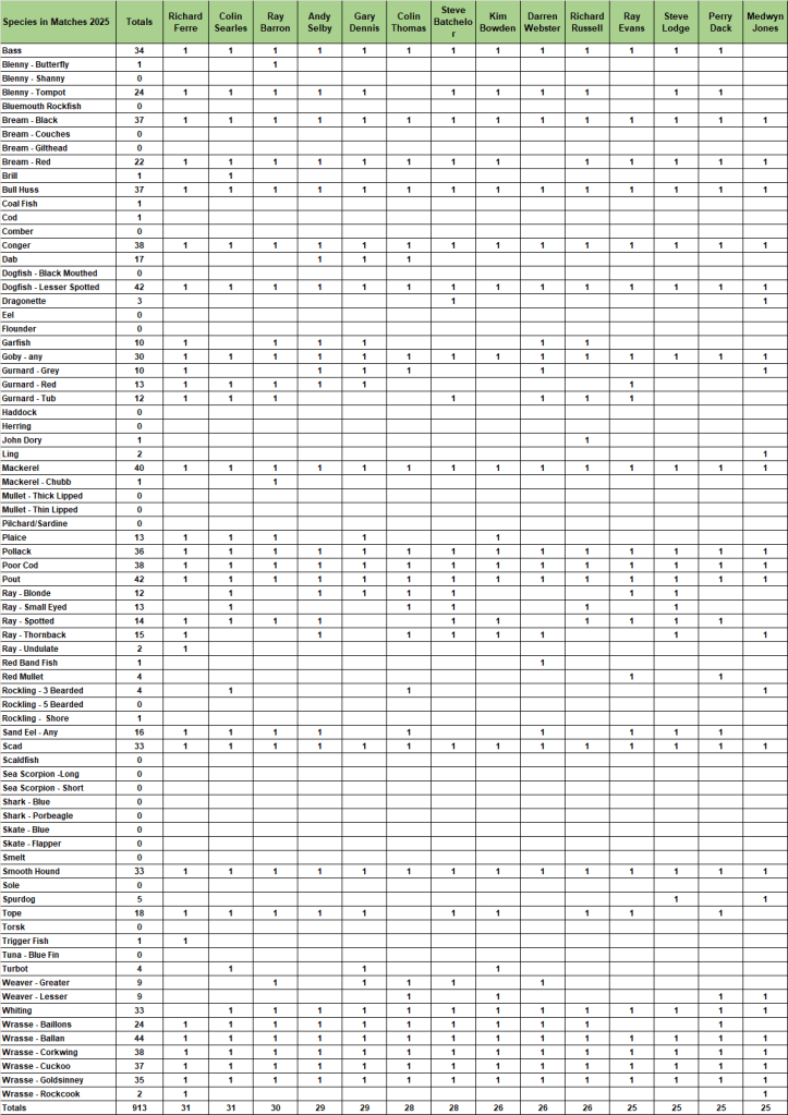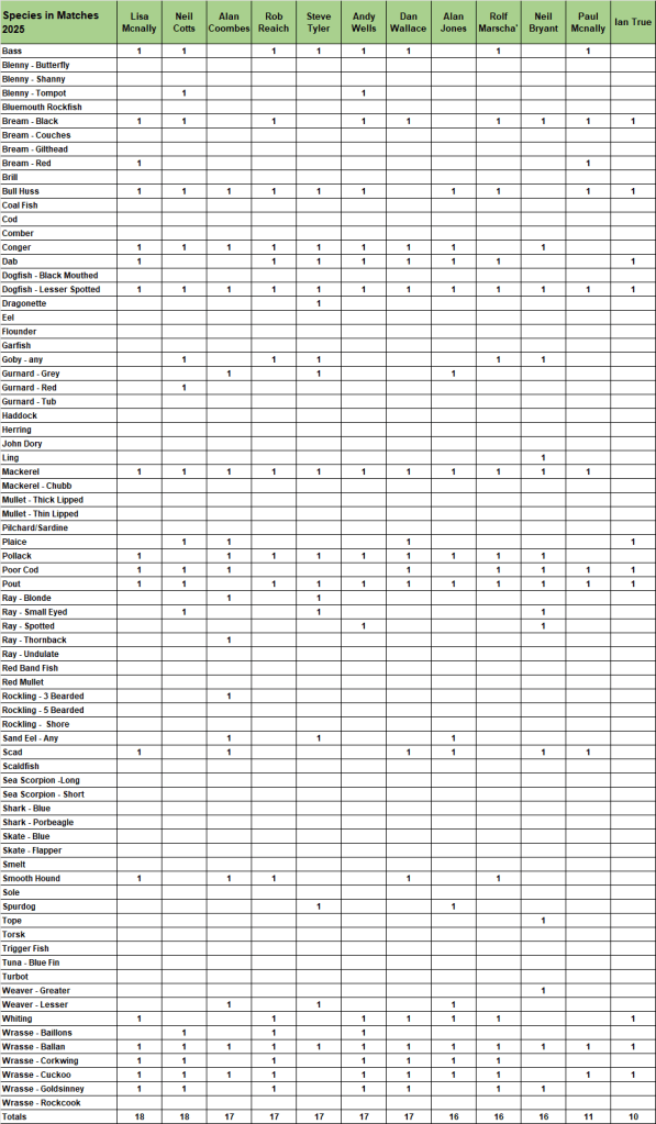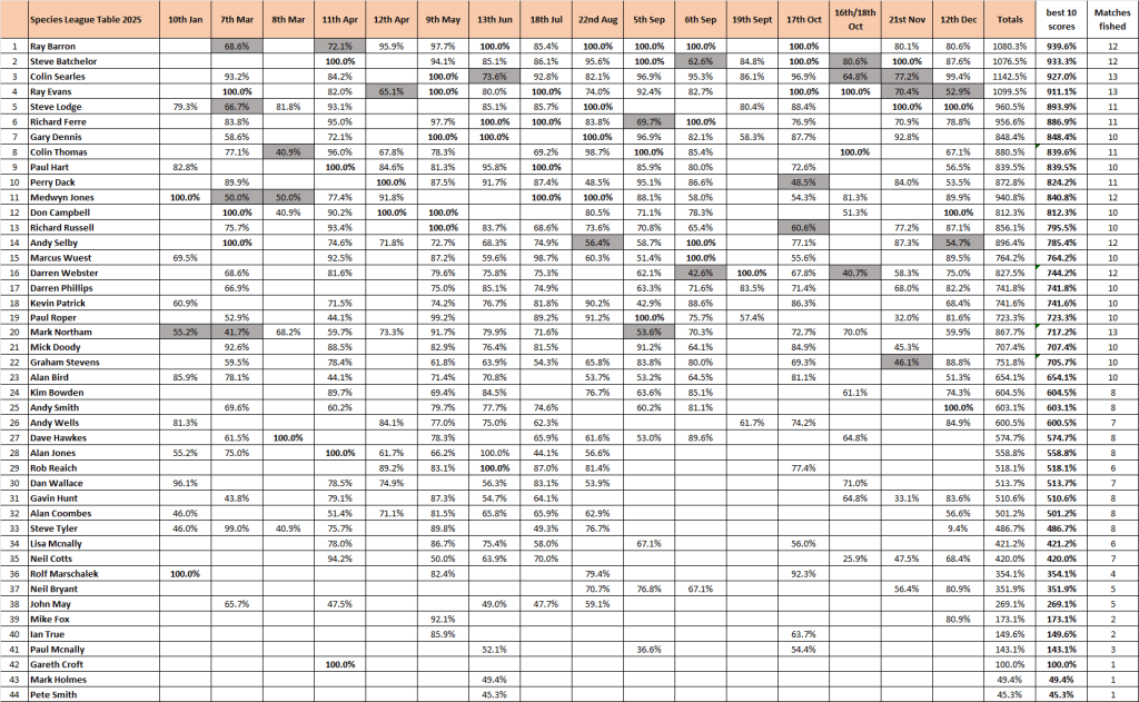 2025 Species League Tables 2025 Prize Winners and Medalist’s Final league tables Percentages of all matches in 2025 Species caught in matches Share this:TweetLike Loading...