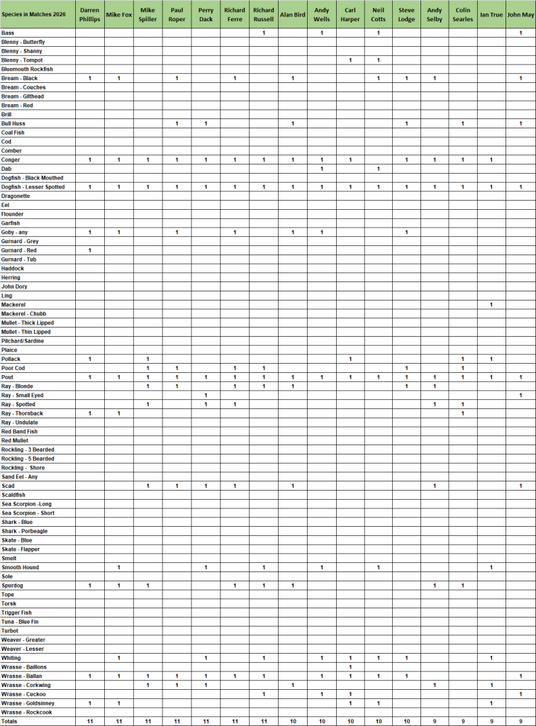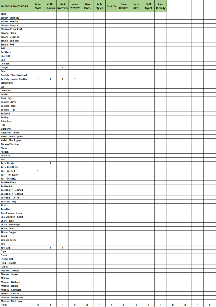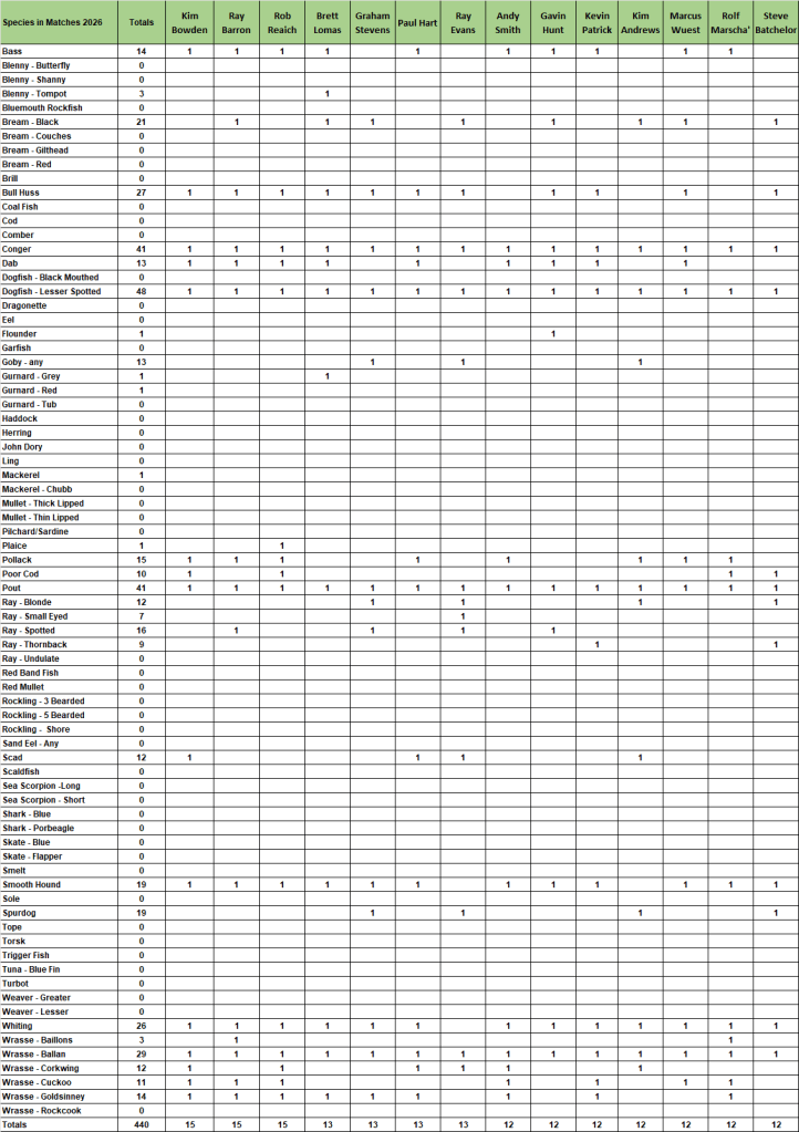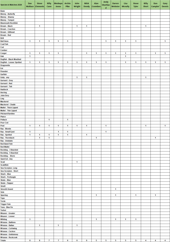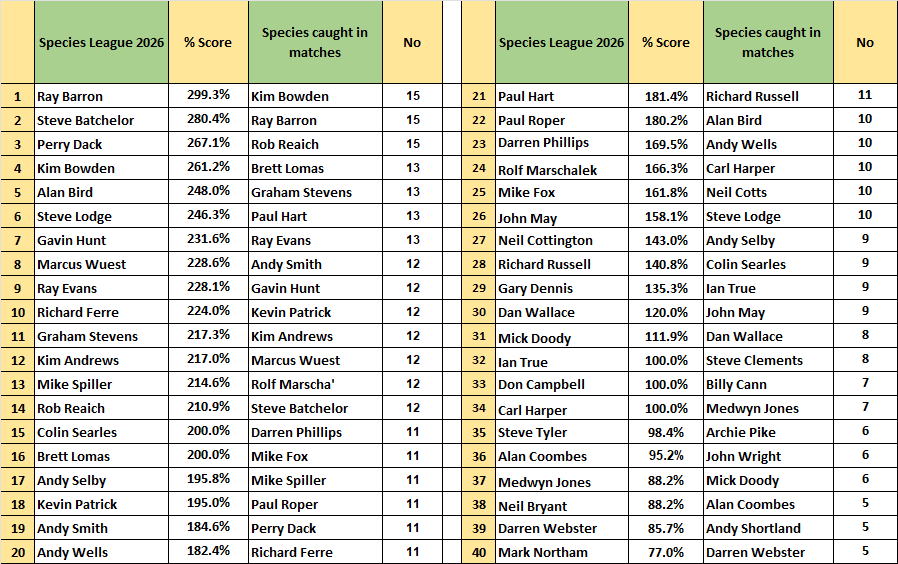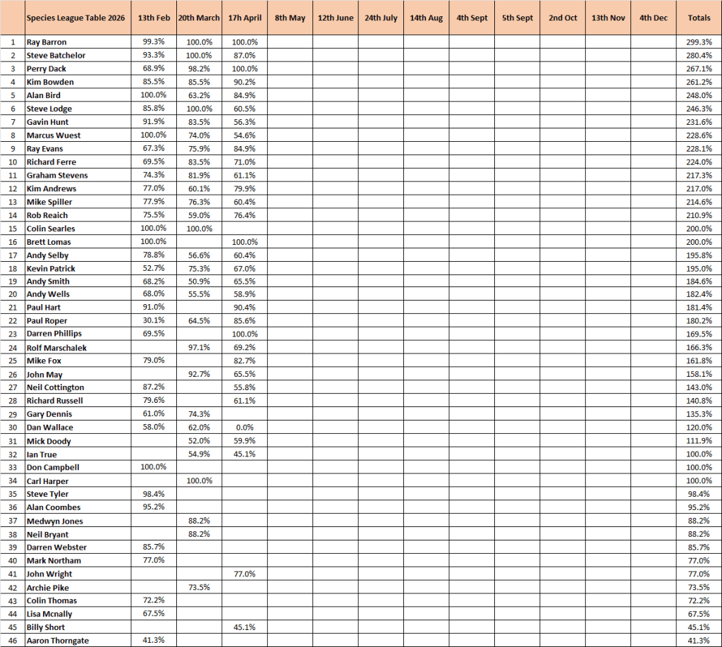 2026 Species League Tables